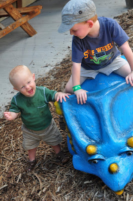 Silas hopped on a dinosaur's back and enjoyed playing, too.